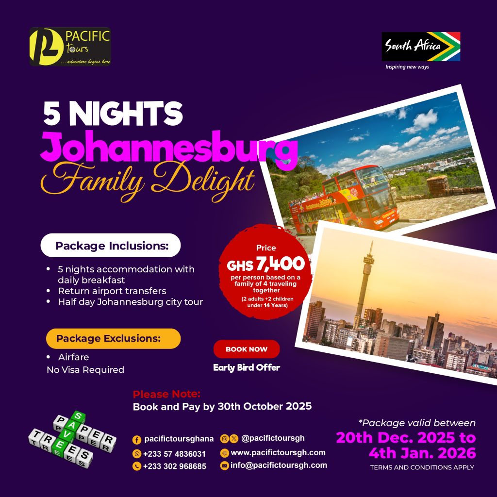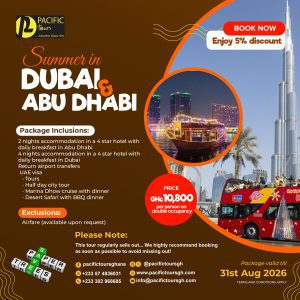 I entrusted Pacific Tours Ghana with my trip and tour to South Africa and it is safe to say that they didn’t disappoint me at all. Right from visa acquisition to ticketing and planning of the tour. Hotel accommodation and airport transfers. Everything went smoothly. What I loved most was the fact that they stayed up at night to ensure I had landed safely and checked in at my hotel.